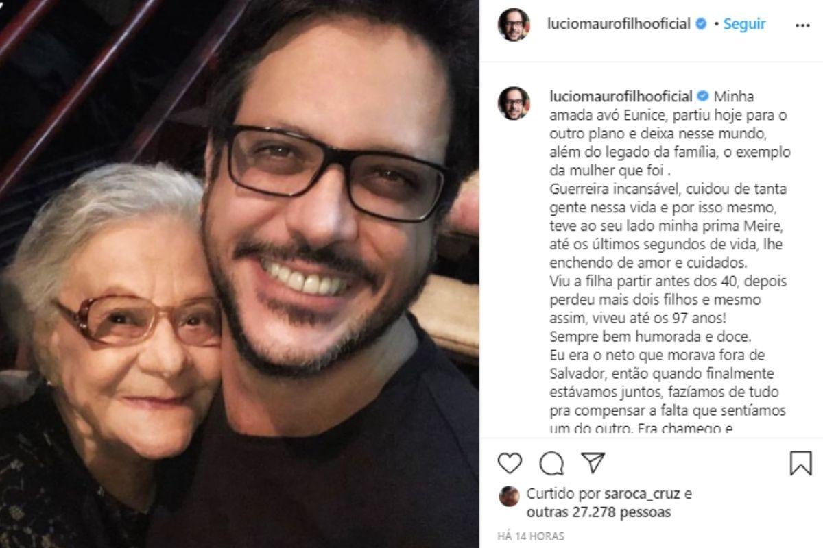 Lucio Mauro Filho, de 46 anos de idade, fez um desabafo sobre a morte da avó dona Eunice, de 97 anos, no Instagram na noite desta quinta-feira, 22 de abril. No post, o ator lamentou a perda e fez uma linda homenagem para a avó.