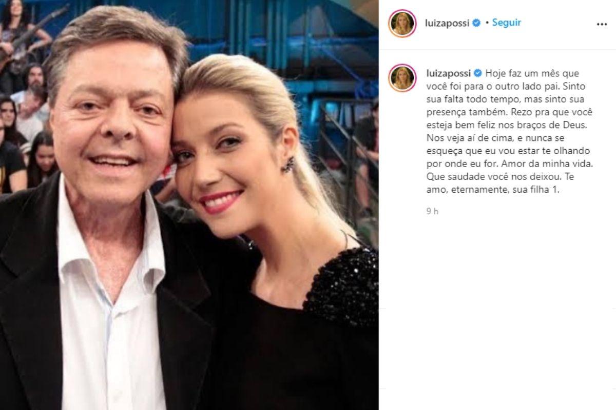Luiza Possi usou as redes sociais nesta terça-feira, 2 de março, para lamentar um mês da partida do pai, Liber Gadelha. O produtor de 64 anos não resistiu após passar dois meses internado com complicações da Covid-19. Através do Instagram, a cantora publicou uma foto e um texto homenageando o patriarca da família.