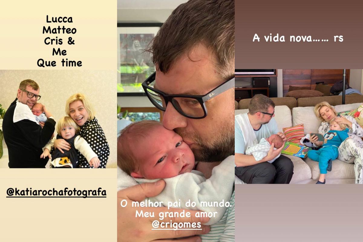 Combo de fofura! Nesta última sexta-feira (22), a cantora, Luiza Possi, compartilhou uma sequência de fotos nos stories com a família reunida e mostrando o rosto do filho recém-nascido, Matteo.