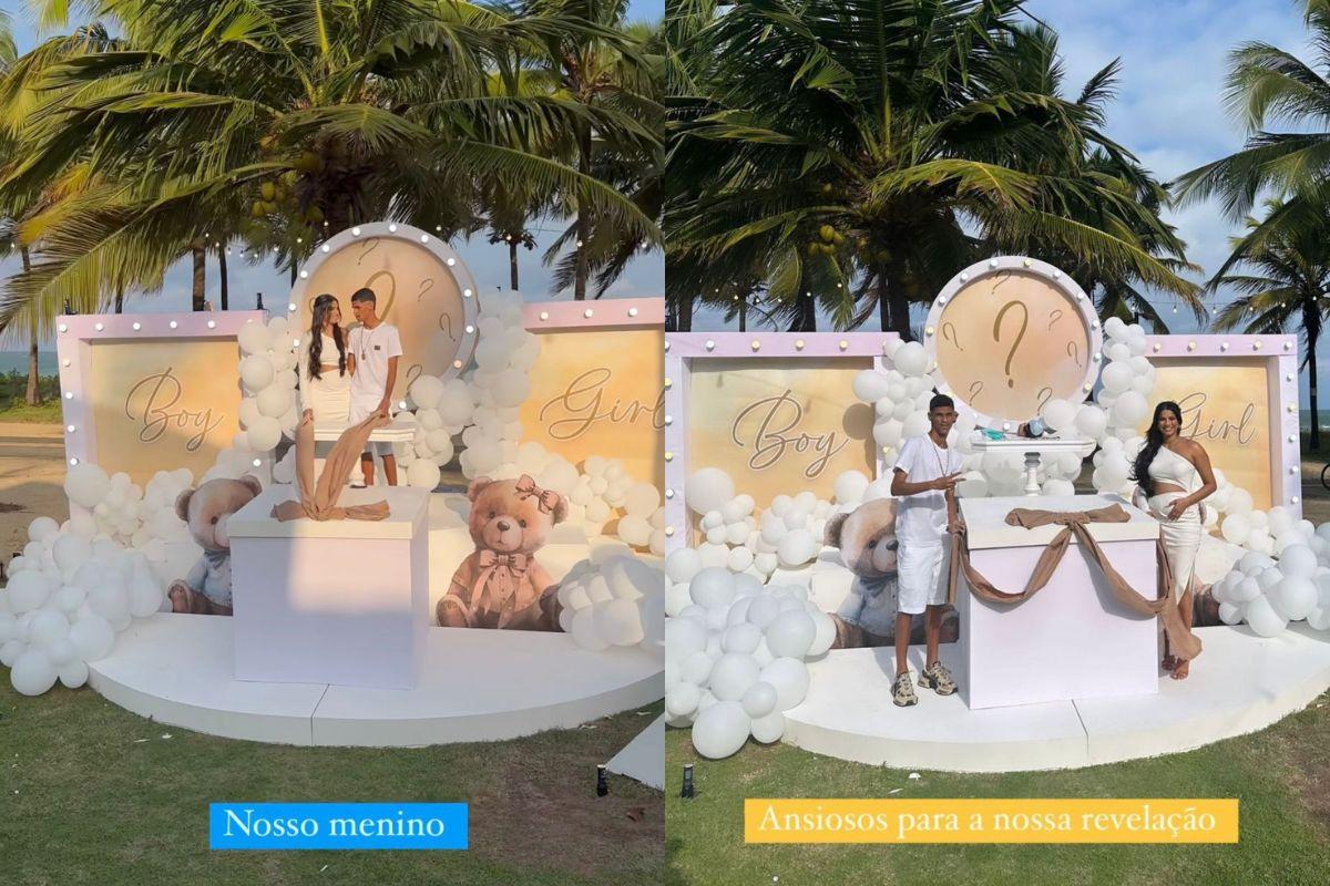 No evento, Tavila Gomes, que ainda não havia sido assumida pelo influenciador, apareceu dando detalhes da festa. Através de Stories publicados no Instagram, os seguidores puderam acompanhar a decoração composta por balões brancos e ursos de pelúcia. O casal, pais de primeira viagem, escolheu roupas inteiramente brancas para o momento, criando uma atmosfera de expectativa para descobrir o sexo do bebê.