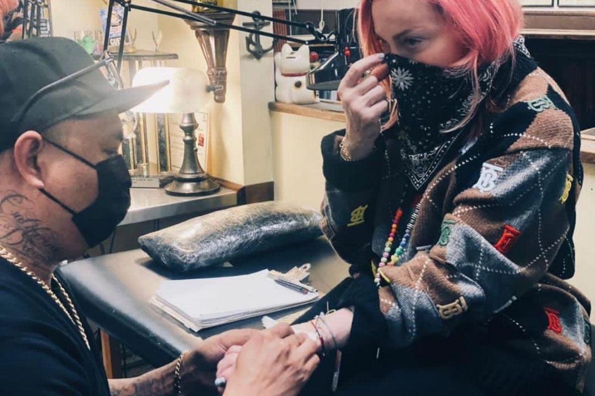 Mãe de Lourdes, Rocco, David, Mercy, Stella e Estere, a cantora aproveitou a terça para tatuar no pulso a inicial de cada um dos filhos. A primeira arte no corpo dela ficou “L R D M S E”. No post em que Madonna contou a novidade, ela publicou várias fotos do momento e escreveu na legenda: “Tatuada pela primeira vez”.