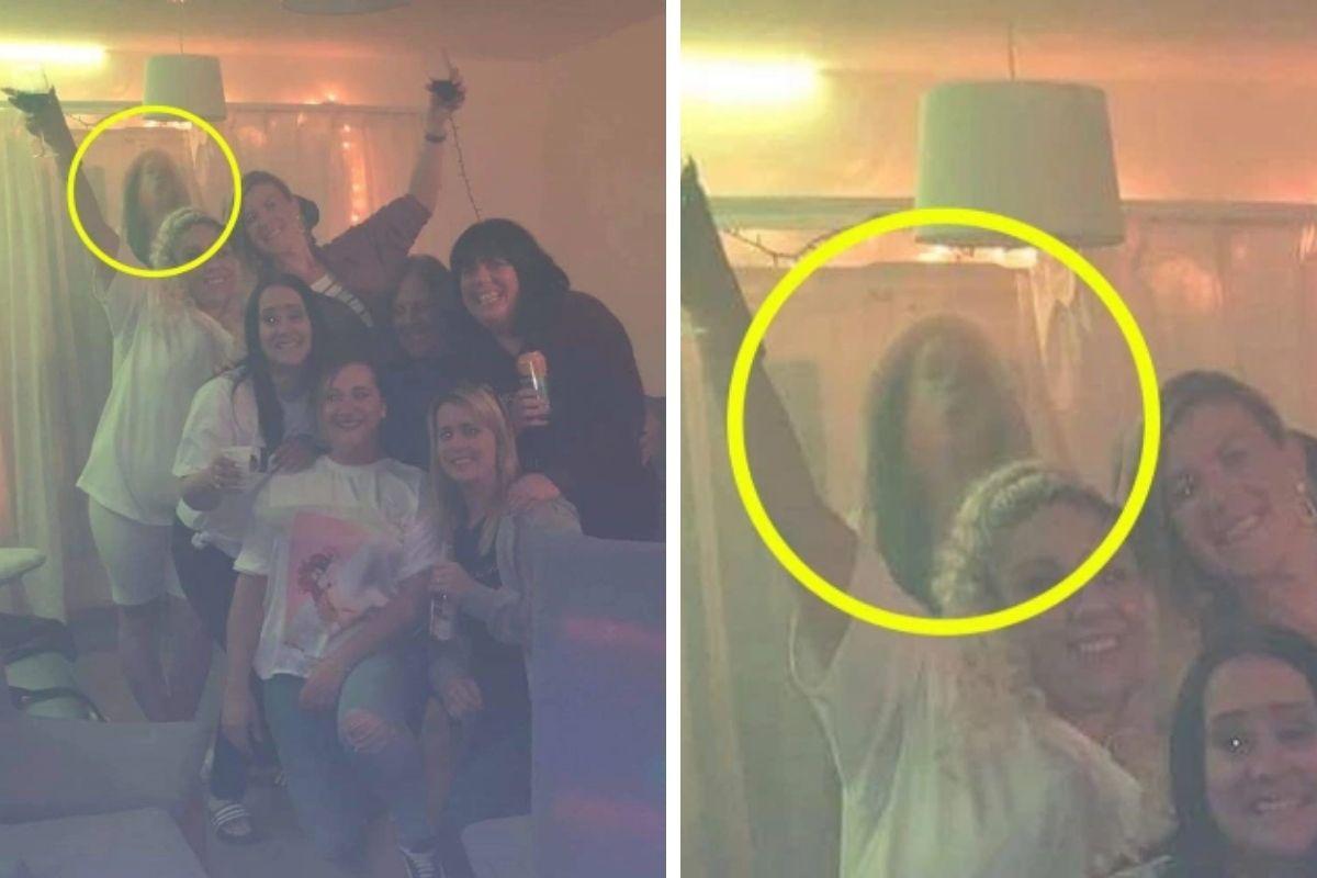 Na foto, uma mulher desbotada como um fantasma com cabelo escuro pode ser vista pairando atrás do grupo que está sorrindo e posando com bebidas. “É uma foto que dá um arrepio na espinha – é na verdade bastante assustadora”, disse a mãe. “Nós pensamos, ‘oh, o que é isso?’ – foi muito estranho. Estávamos todos um pouco assustados e olhamos ao redor da sala como se disséssemos ‘o que poderia ter sido?’ “, completou.