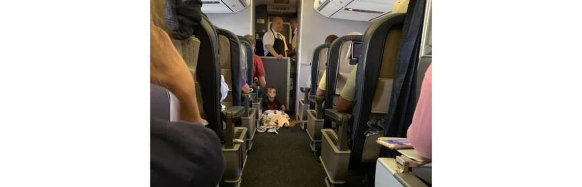 A tripulação não apenas permitiu que o menino ficasse deitado no chão, como ofereceu um cobertor para ele. Apenas pediram para que ficasse no colo da mãe durante a decolagem até aparecer o sinal de que os passageiros poderiam retirar o cinto.