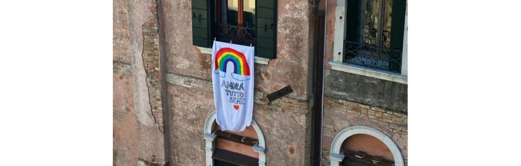 Ela ainda contou que as crianças também fazem parte desse movimento. “Elas estão fazendo cartazes com arco-íris, junto com a mensagem ‘Andrà tutto bene’”. Centenas de janelas e paredes das casas italianas estão ocupadas pelos cartazes e lençóis com essa mensagem de esperança e união.