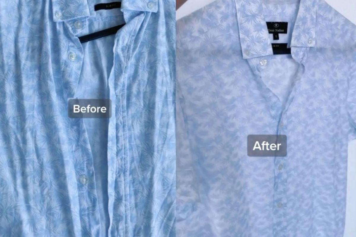 Depois de separar todos os itens, a mãe misturou todos os ingredientes em um borrifador e depois espirrou a mistura em uma roupa amassada. Depois de aplicar a mistura, Chantel suaviza o material e deixa-o pendurado por cinco minutos. Para ela, a tática é ótima para os dias de pressa ou para longas viagens, já que ajuda a desamassar as roupas que ficam na mala, sem precisar de passá-las com um ferro.