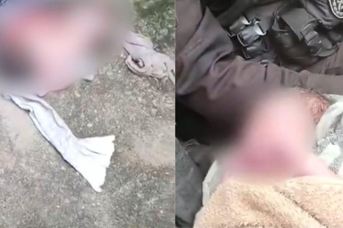 O bebê foi resgatado após informações dadas por denúncia 190 (Foto: Reprodução/ Polícia Militar)