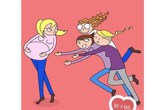 A ilustradora (e mãe) Line Severinsen não pode deixar de rir dessas “alegrias” da maternidade e transformá-las em ilustrações. “Eu pensei na minha própria gravidez na hora de criar. Queria ajudar pessoas como eu a entender que elas não estavam sozinhas e que não tem o menor problema achar a gestação ‘um saco’ às vezes”, escreveu.
