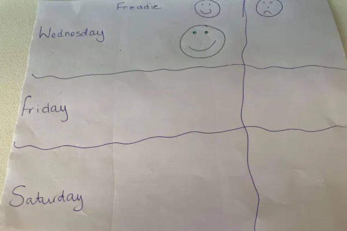 Ou seja, a ideia é que a cada manhã, eles preencham o gráfico de acordo com o quão bem dormiram com o objetivo de obter sete rostos sorridentes – que indicam um sono sólido. A ideia rendeu muitos elogios dos outros pais.