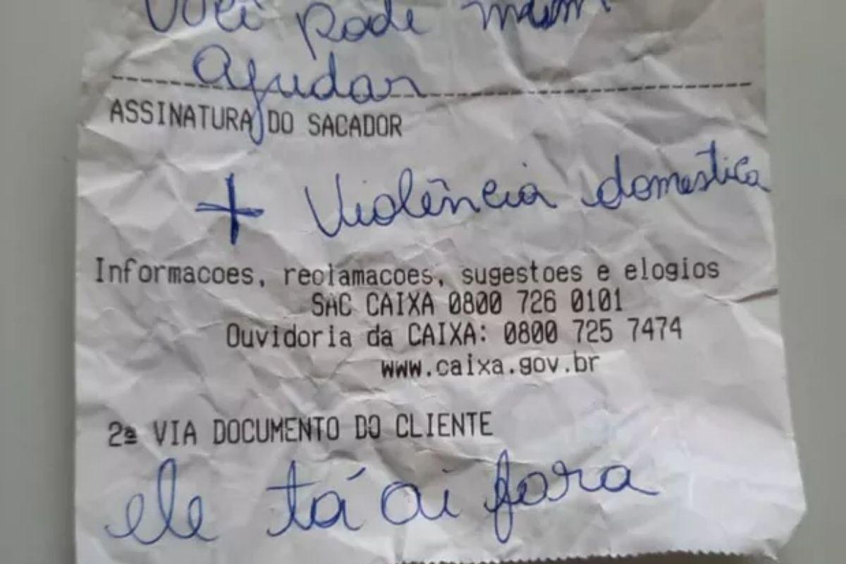 Uma mulher de 27 anos pediu ajuda na última segunda-feira, 1 de março, através de um bilhete entregue em uma agência bancária de Sobradinho, no Distrito Federal, e de um “X” escrito na palma da mão. A vítima estava fazendo um saque do Bolsa Família quando alertou o funcionário sobre a situação que estava vivendo com o companheiro.