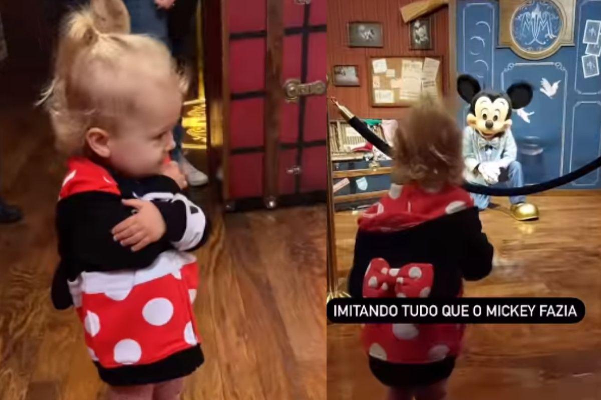 Alice conhecendo o Mickey (Foto: Reprodução / Instagram / @morganasecco)