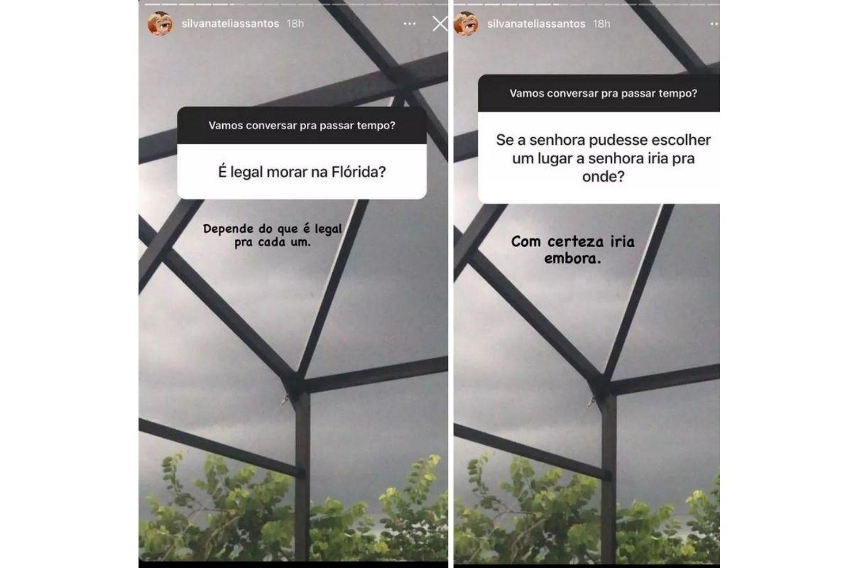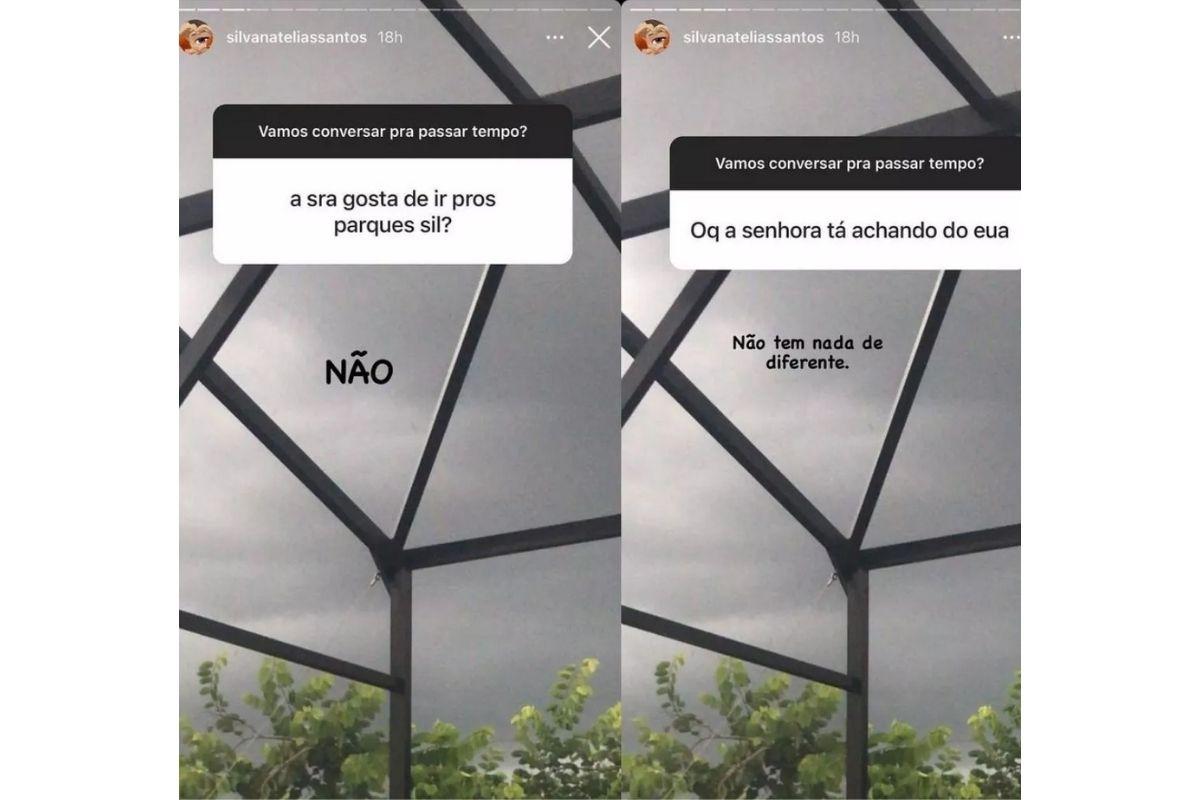 Ao ser questionada quando a família voltaria ao Brasil, Silvana respondeu: “Por mim já teria voltado”. Além disso, ela afirmou que “não tem nada de diferente” nos Estados Unidos, e que não gosta de ir aos parques. A família tem passado uma temporada nos parques da Disney, em Orlando.