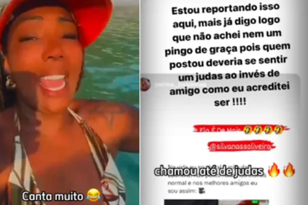 No registro, a mãe aparece ouvindo música, tomando banho de piscina e bebendo drinks. Porém, ela não gostou nada do vazamento do momento de curtição e tirou diversas pessoas dos melhores amigos até descobrir que a filha quem tinha aprontado.”Estou repostando isso aqui, mas já digo logo que não achei nem um pingo de graça pois quem postou deveria se sentir um judas ao invés de amigo como eu acreditei ser!”, postou nos stories. Após descobrir que foi Ludmilla quem vazou, ela removeu a filha dos melhores amigos.”Gente me ajuda aí, vamo lá no tik tok dela pedir pra ela me colocar de volta 😂”, disse a cantora.
