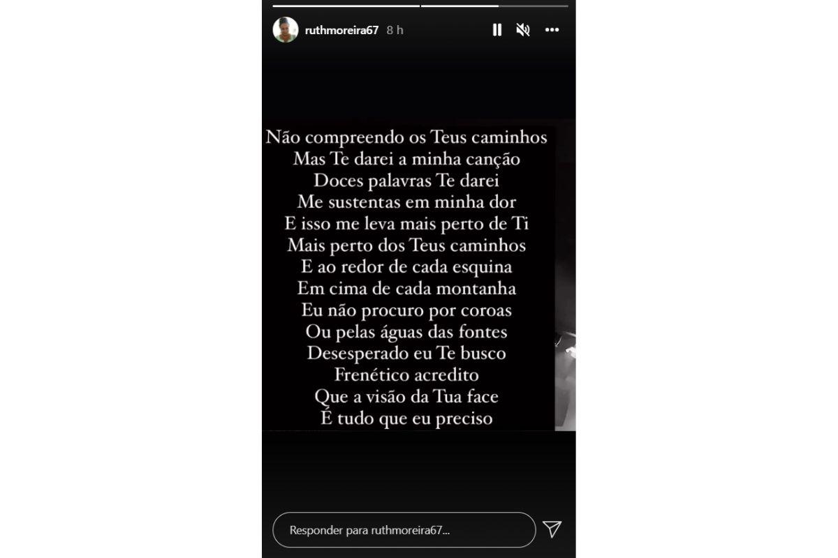 Neste último domingo (14), Ruth Moreira, mãe de Marília Mendonça, fez uma publicação nas redes sociais com uma mensagem de fé com trecho de música gospel.