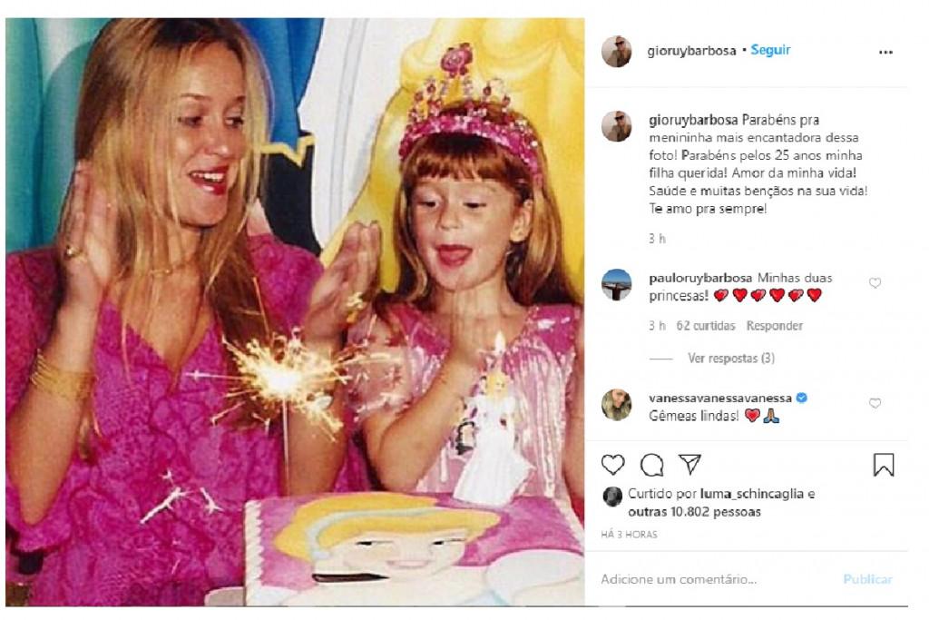 Em outra imagem, Gio mostrou Marina criança comemorando um dos aniversários.”Parabéns pra menininha mais encantadora dessa foto. Parabéns pelos 25 anos minha filha querida! Amor da minha vida! Saúde e muitas bençãos na sua vida! Te amo pra sempre”, declarou.