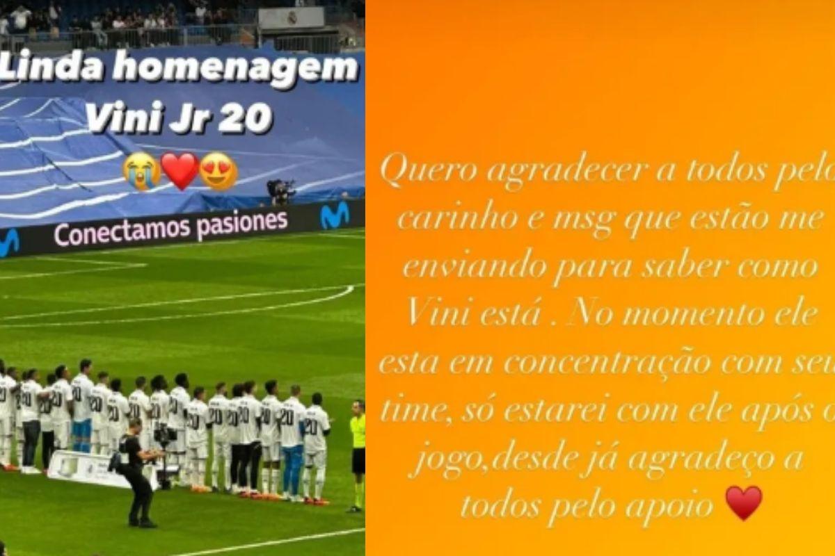 “Quero agradecer a todos pelo carinho e mensagens que estão me enviando para saber como Vini está. No momento ele está em concentração com seu time, só estarei com ele após o jogo, desde já agradeço a todos pelo apoio”, escreveu Fernanda.