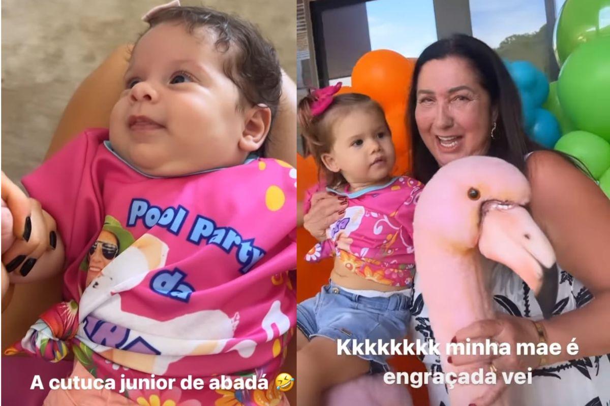 Com o tema ‘pool party’, a festa foi na mansão da família e conta até com abadá personalizado. Virginia mostrou as filhas, Maria Alice e Maria Flor com os abadás através dos stories. Zé Felipe também apareceu todo produzido para a festa. Sorridentes, o cantor, a sogra e Virginia surgiram abraçados. “Curtindo o dia dela”, escreveu a influenciadora na legenda da publicação.