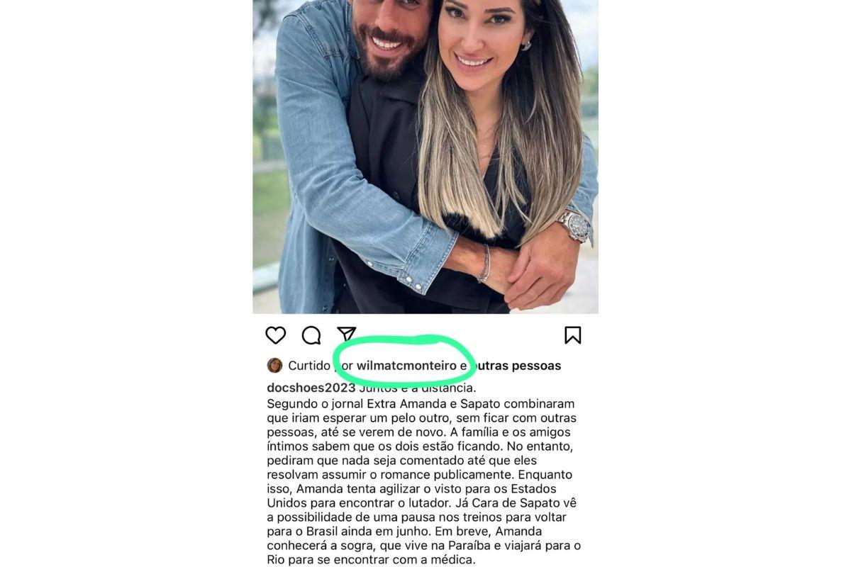 A publicação feita por um perfil de fã do casal, escreveu a notícia do portal Extra: “Juntos e distância […] Amanda tenta agilizar o visto para os Estados Unidos para encontrar o lutador. Já, Cara de Sapato vê a possibilidade de dar uma pausa nos treinos para voltar para o Brasil ainda em junho”, diz o texto.
