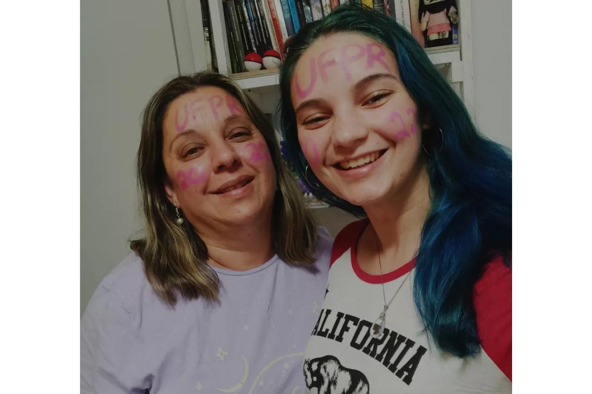 Em complemento, a mãe falou: “Foi uma loucura. Eu imaginava que ela fosse passar, porque era mais jovem e tal. Mas era um sonho meu continuar, voltar a federal. Só que eu não sabia se eu estava preparada pra isso ainda. Daí ela chegou pra mim e disse ‘Mãe, vamos nos inscrever pra federal juntas?’ e eu disse ‘Tá bom, vamos’”.