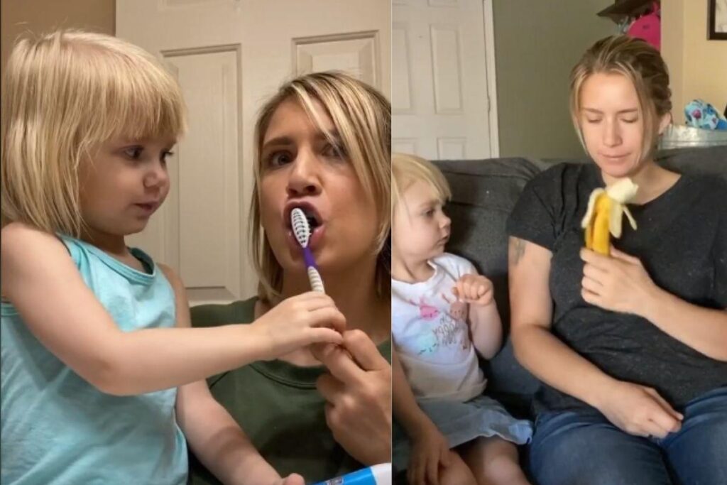 Mãe imita comportamentos da filha e mostra a reação da garota em vídeos que vão aquecer seu coração (Foto: reprodução TikTok)