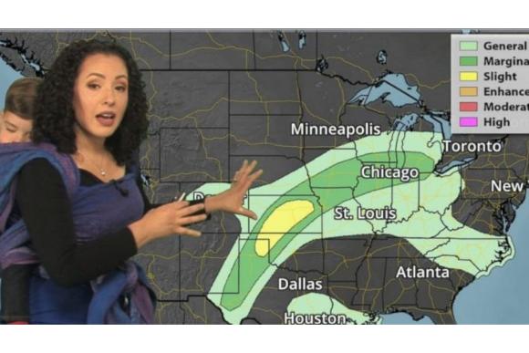 Susie Martin, uma meteorologista de um jornal matinal americano, chamou atenção ao trazer um participante especial para apresentar as previsões do tempo: o filho. O menino estava pendurado em uma especie de canguru ao contrário nas costas da mulher e o intuito era empoderar as mães e pais do país a usar o babywearing.