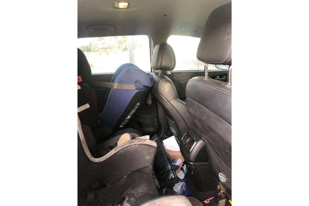 O banco traseiro do carro de Laura (Foto: Reprodução / Facebook)