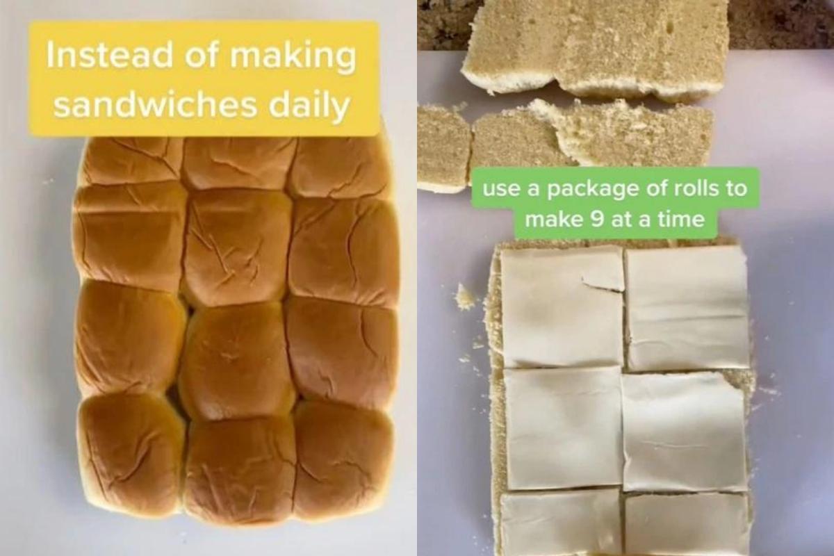 Ela explica: “Em vez de fazer sanduíches todos os dias para a merenda escolar, você pode pegar um pacote de pãezinhos e depois cortar ao meio e fazer como se fosse um grande sanduíche. Então você vai juntar tudo de novo, e depois cortar em sanduíches individuais e colocá-los em seus saquinhos.”