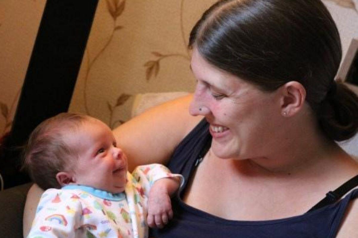 Laura Stibbards estava a caminho do hospital no dia planejado para a cesariana quando a bolsa estourou no carro. Apesar de aumentar a velocidade, o bebê não pode esperar e a mãe não conseguiu chegar na maternidade a tempo e acabou dando à luz em um banheiro para pessoas com deficiência na porta do hospital.