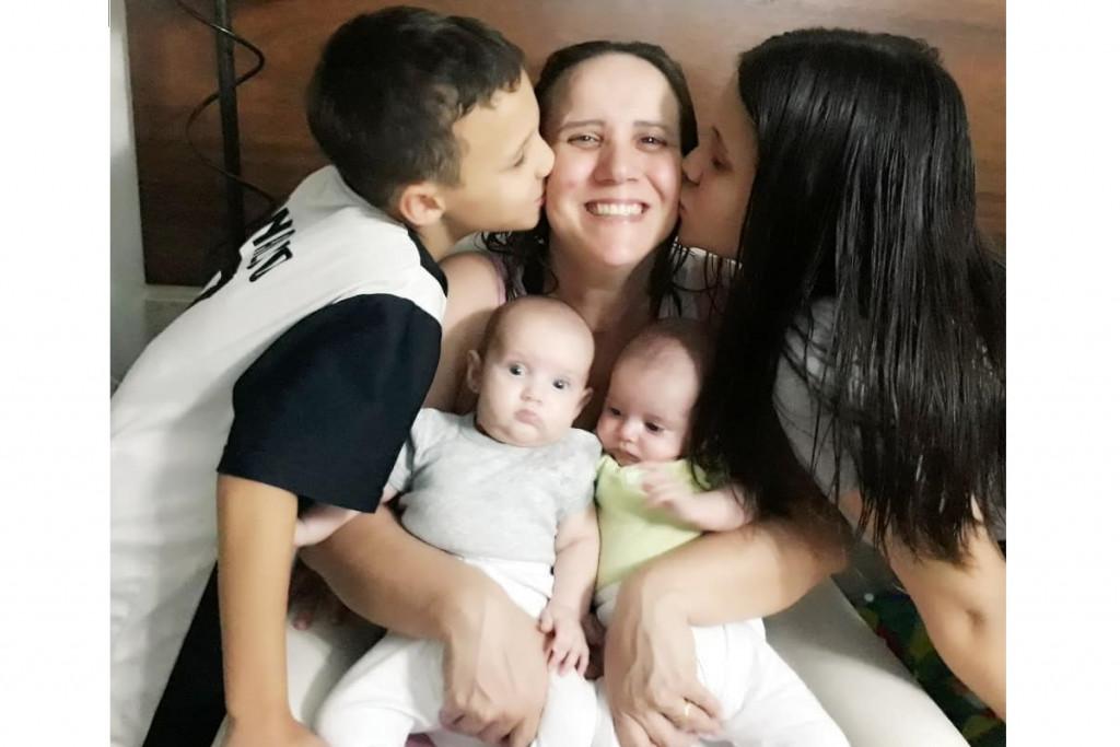 Assim que saiu do quarto, a professora viu as filhas gêmeas de 1 ano a estranharem um pouco por causa do período de afastamento. Logo depois, no entanto, a dupla deu o tão esperado abraço em Eliene, junto de Pedro Henrique, de 9 anos, e Ana Beatriz, de 16 anos.