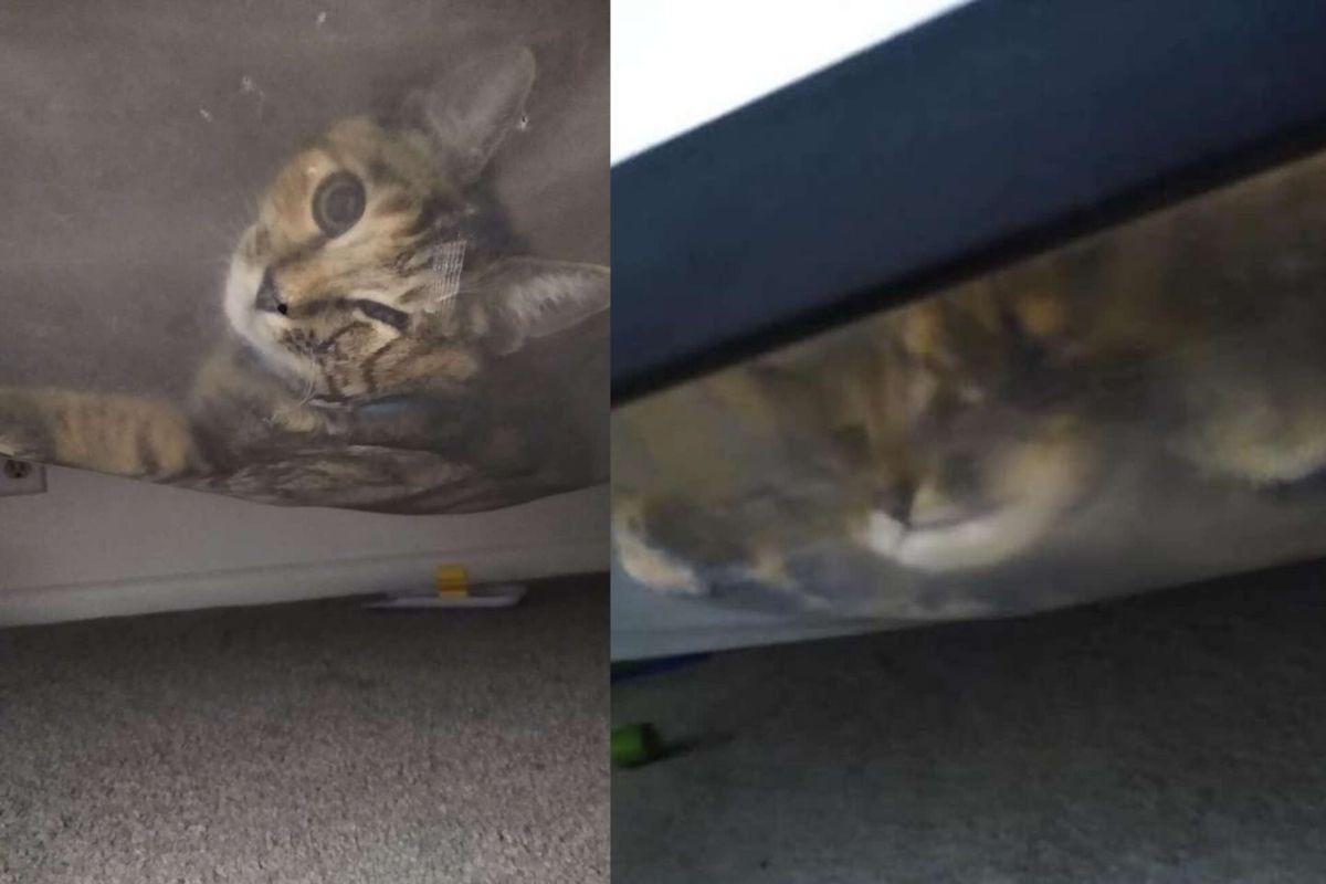 Mas dessa vez a brincadeira não acabou muito bem para a gata, que tentou procurar algo embaixo da cama e acabou ficando presa. Felizmente “Sis” não encontrou nada lá embaixo para comer, o que deixou o menino aliviado. “Quando eu olhei lá embaixo e vi Sis, todos nós rimos muito. Ainda não temos ideia de como ela entrou lá”, disse Koyle,