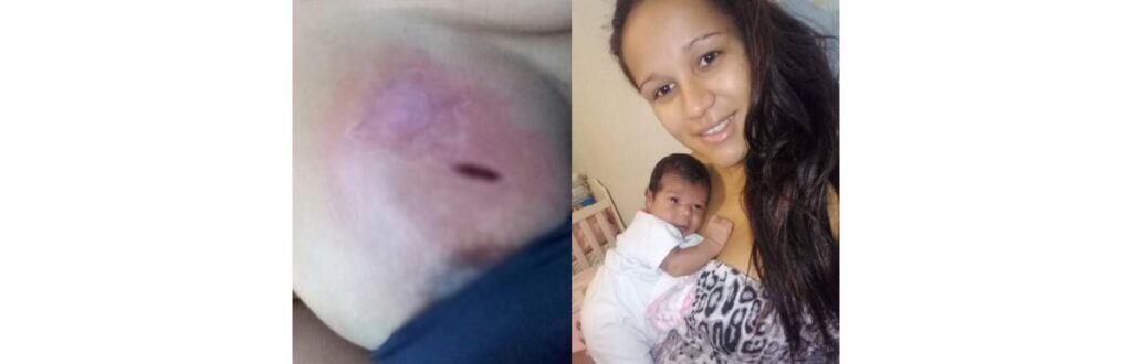 A mãe foi enviada à maternidade para consulta com o ginecologista obstetra e descobriu que estava com mastite. “Como sempre, nada foi resolvido e somente me passaram antibióticos. Cada vez que eu ia lá, era um antibiótico diferente que me passavam. Os obstetras pediram para eu continuar amamentando, pois resolvi parar, já que minha filha não é obrigada a mamar leite com pus, além de eu estar tomando tês tipos de antibióticos fortíssimos”, desabafou.