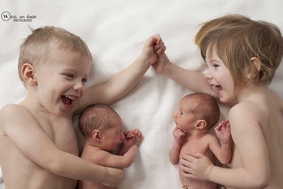 Mas o que ela não esperava era a repercussão que uma foto em especial teria. Nessa fotografia as novas gêmeas estão com seus irmãos mais velhos que também são gêmeos. A foto é a coisa mais linda e a mãe ficou emocionada de ver os quatro filhos juntos. “É possível que eu esteja sendo um pouco tendenciosa, mas acho que minhas meninas são a coisa mais fofa que eu já vi na vida”, escreveu Juliet no facebook. Olha só a galeria que a gente separou com algumas das fotos do ensaio fotográfico dessa família.