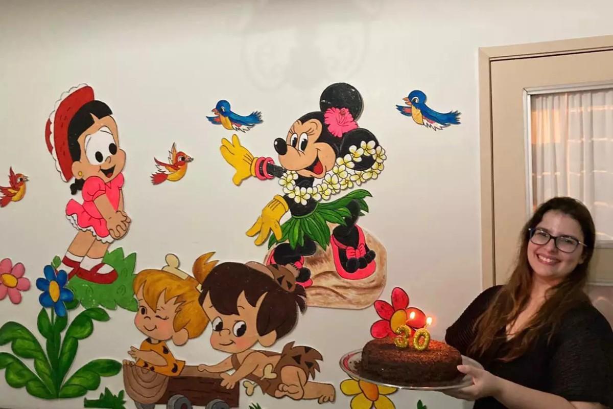 Ao longo de todos esses anos, Talita vinha guardando as decorações em um maleiro dentro do armário. O cuidado existe para que não sofram danos. Por isso, com a festa planejada cancelada, ela decidiu dar uma utilidade para os itens: “Eu amei ver um pouco da minha história novamente. Foi mágico”