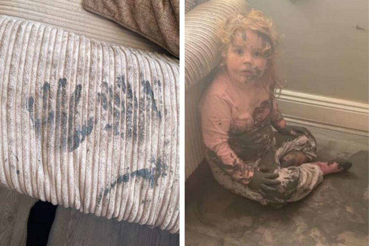 Mãe viraliza ao mostrar ‘arte’ das filhas com tinta preta em toda a casa recém-reformada (Foto: reprodução Facebook / Mirror)