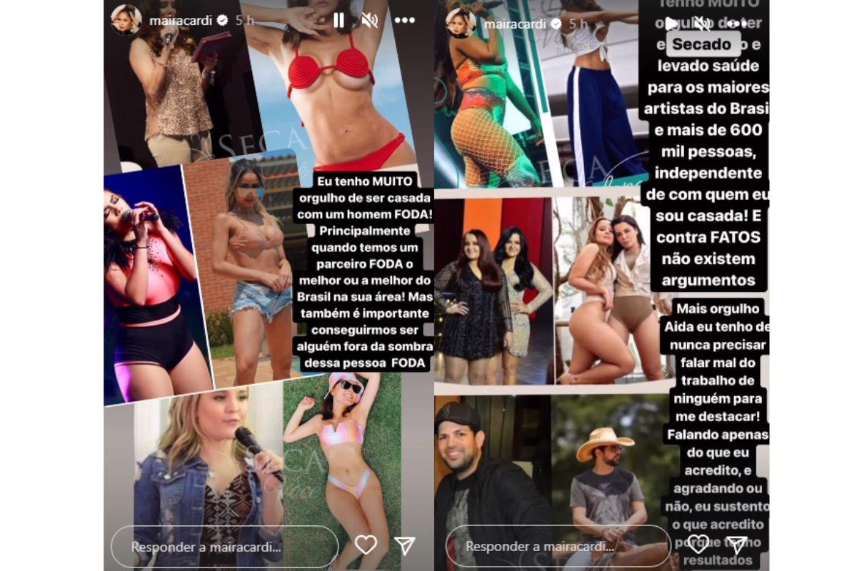 Na sequência, ela falou sobre seu trabalho como coach fitness.”Tenho muito orgulho de ter levado saúde para os maiores artistas do Brasil e mais de 600 mil pessoas, independente de com que eu sou casada: E contra fatos não há argumentos.Mais orgulho ainda eu tenho de nunca ter precisado falar mal do trabalho de ninguém para me destacar. Falando apenas do que eu acredito. Agradando ou não, eu sustento o que acredito porque tenho resultados”.