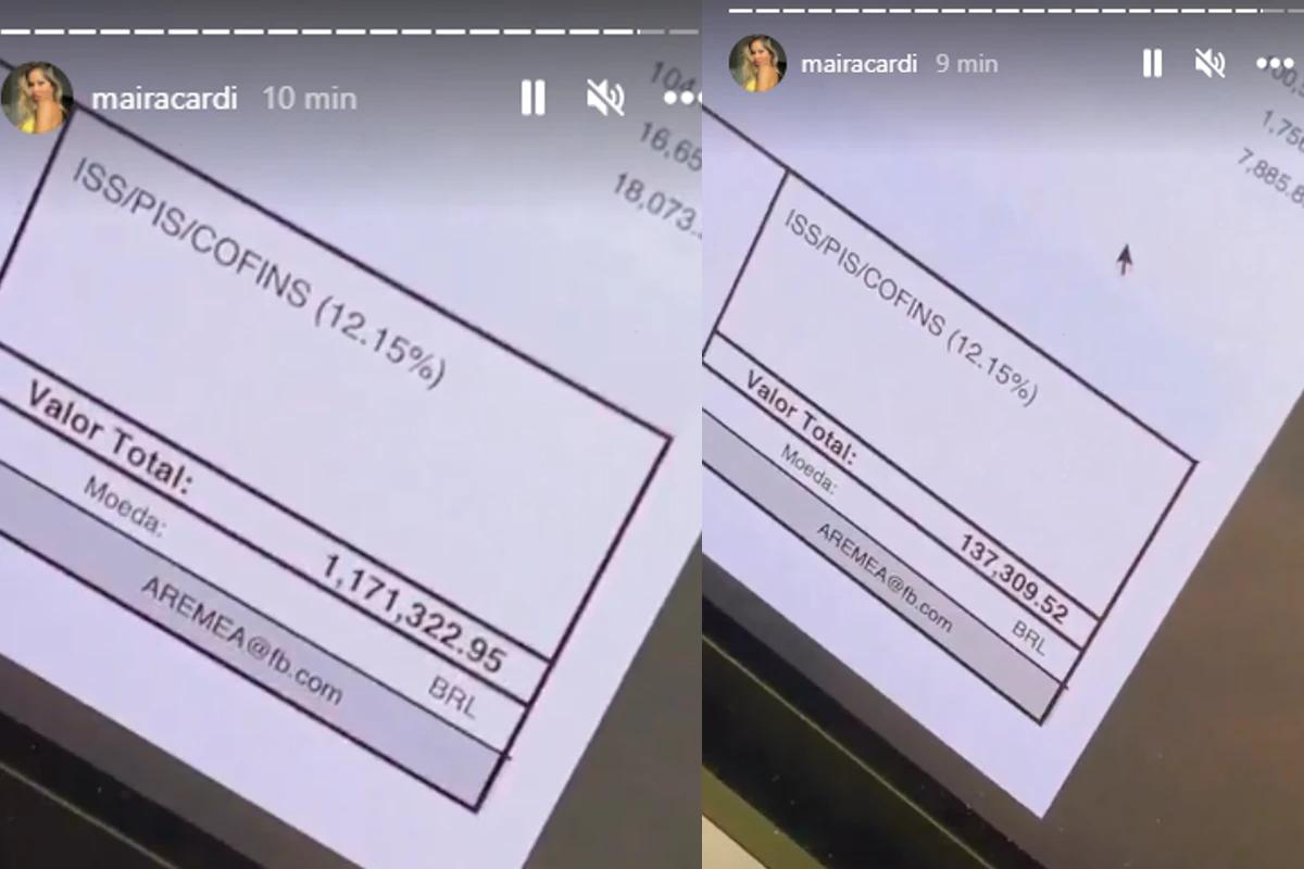 O valor das contas que a influenciadora ainda precisa pagar (Foto: Reprodução/ Instagram @mairacardi)