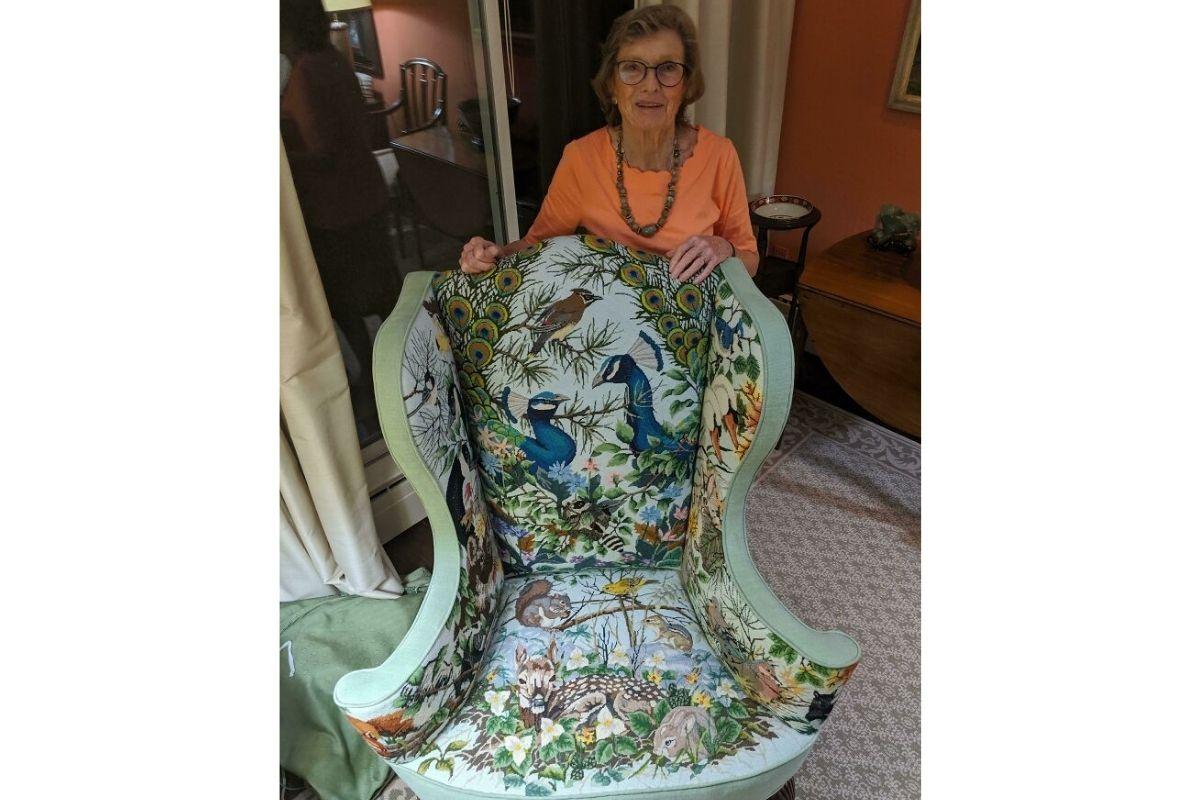 Um neto compartilhou uma foto da avó, de 86 anos, com uma cadeira feita a mão que ela mesma fez, com bordado! Na publicação, ele contou que a cadeira levou 25 anos para ficar pronta e leva cerca de 14 fios por polegada. Haja dedo – e paciência – para chegar no resultado final!