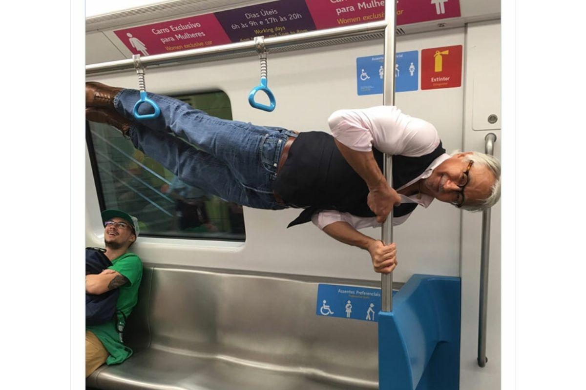 “Uma pessoa ofereceu o assento preferencial para meu avô no metro e ele fez isso”, escreveu um internauta ao compartilhar uma foto do avô se equilibrando na barra de ferro de metro. Quanta força!