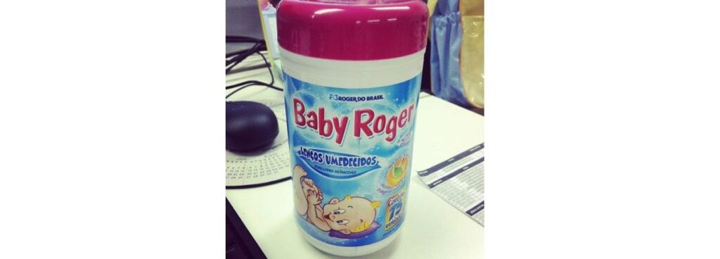 Recebemos aqui os lenços umedecidos da marca Baby Rogers, que vieram dentro de uma bolsa de bebê. Cada produto contém 75 unidades e extrato de aloe vera e lanolina, para hidratar e higienizar a pele dos bebês. Quanto mais fresquinho, melhor!