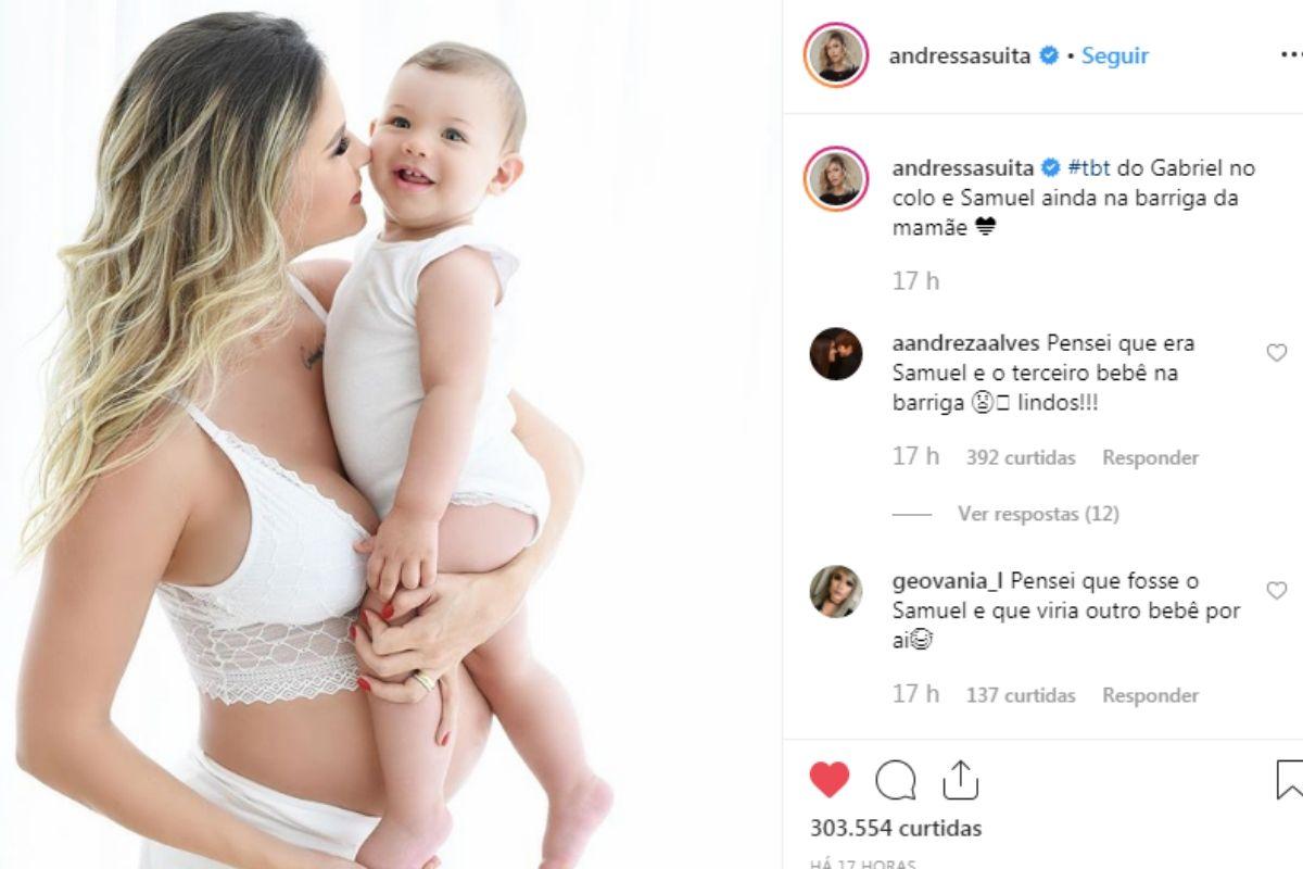 A influencer e modelo, Andressa Suita gerou muitas dúvidas entre seus fãs ao postar foto de ensaio de gravidez nesta quinta-feira, 30 de maio. A imagem relembra a gestação do filho mais novo, Samuel, só que para muitos houve uma confusão, pois eles pensaram que se tratava de uma nova gravidez.