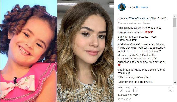 Recentemente, com a febre do “10 Years Challenge”, que consiste em postar uma foto comparando uma pessoa com o passar de 10 anos, Maísa participou do desafio e postou em seu Instagram.