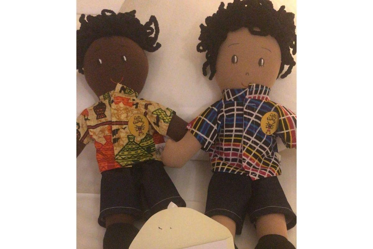 “Pedro e João que lutem para tirar os irmãos Kintê dos pais. Fofura de presente da tia @majucoutinhoreal para esses gêmeos já cheio de amiguinhos”, escreveu Andréia na legenda da publicação. Na foto, dois bonecos negros aparecem lado a lado usando camisas estampadas.