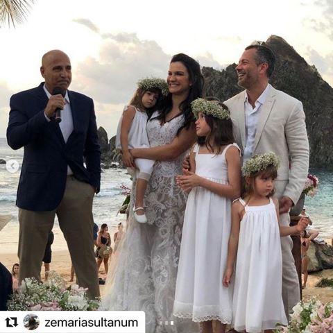Malvino Salvador e Kyra Gracie fizeram uma cerimônia religiosa lindíssima em Fernando de Noronha com a família para oficializar o casamento no último sábado, 12 de outubro. O casal está junto há 5 anos, mas decidiram subir ao altar em uma cerimônia reservada com a presença das filhas Ayra, de 5 anos, Kyara, de 2 anos, e Sophia, de 10 anos, fruto de um relacionamento anterior do ator. As meninas participaram do casamento como daminhas de honra.