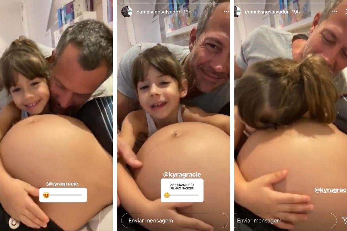 Recentemente as filhas de Malvino Salvador mostrou que estão ansiosas para a chegada do bebê. Kyra Grace, que já está no quinto mês da gestação, recebeu muito carinho na barriga da filha mais nova, Kyara, de 4 anos e do marido.
