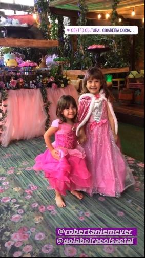 As meninas, que estão completando 5 e 3 anos, respectivamente, escolheram “princesas” como o tema da festa e a mãe, Kyra, mostrou tudo no Instagram.