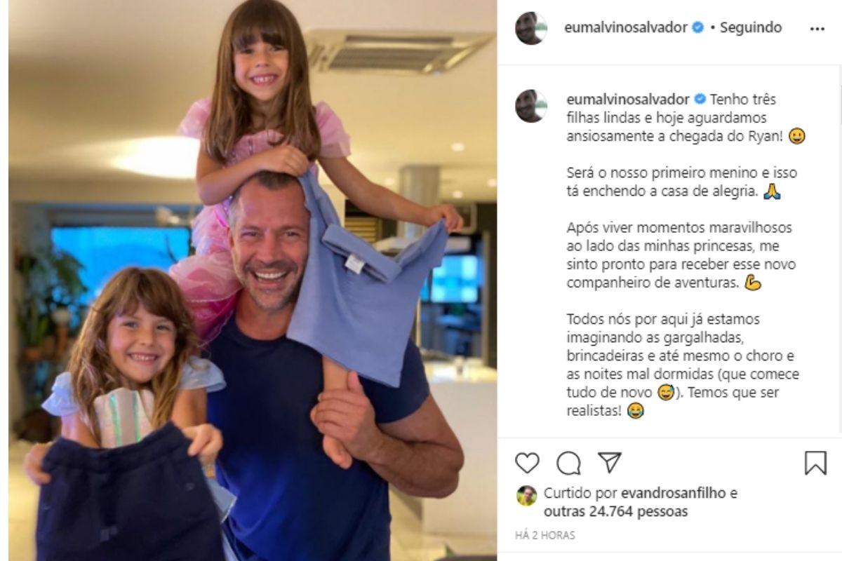 “Tenho três filhas lindas e hoje aguardamos ansiosamente a chegada do Ryan! Será o nosso primeiro menino e isso tá enchendo a casa de alegria. Após viver momentos maravilhosos ao lado das minhas princesas, me sinto pronto para receber esse novo companheiro de aventuras. Todos nós por aqui já estamos imaginando as gargalhadas, brincadeiras e até mesmo o choro e as noites mal dormidas (que comece tudo de novo). Temos que ser realistas!’, escreveu o famoso ao publicar a foto.