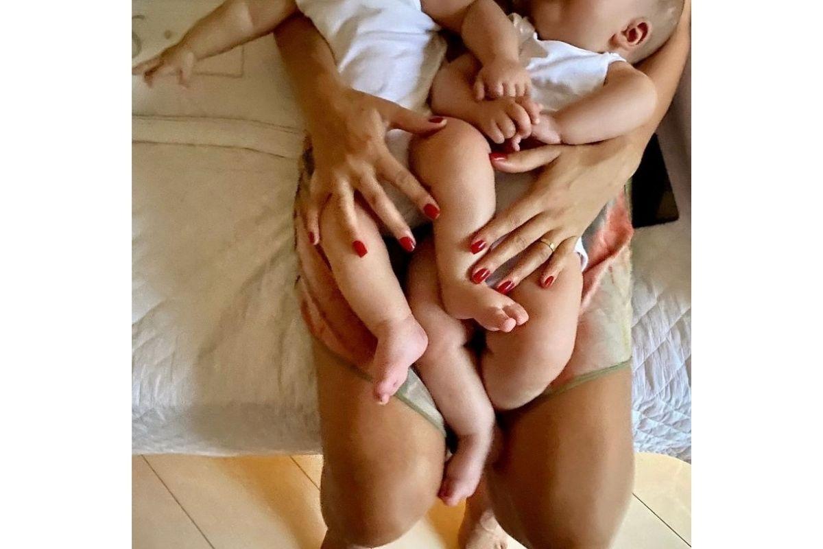 A cantora também falou sobre a saudade que sentiu das filhas nesse curto tempo em que esteve sozinha. “Quando voltei pra casa, roxa de saudades, adivinha? As duas também estavam!! E pediram colo ao mesmo tempo. Faz como? A gente dá um jeito, né?” relatou no texto, cheio de amor pelas gêmeas.