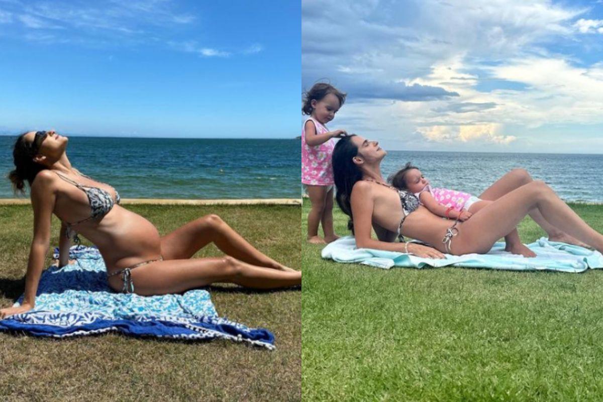 “Há exatos dois anos eu estava aqui, nesse mesmo lugar, com elas na minha barriga. Era pandemia e eu me lembro que estar aqui foi um respiro de ar fresco, de liberdade, de sol, sal e muito amor. A tensão da minha gravidez de risco foi ficando mais leve e a gratidão florescendo mais e mais junto da fé”, disse a mãe.