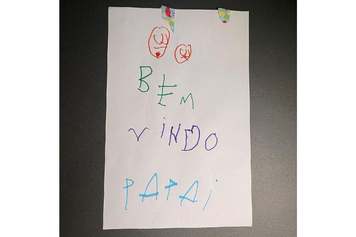 Em uma publicação feita no Instagram, Marcos compartilhou uma foto do bilhete dado pelo filho mais velho. Na folha, Romeu fez um desenho dele ao lado do pai e escreveu: “Bem-Vindo, papai”.