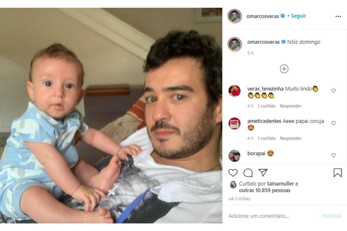 O clique mostra Marcos Veras sentado carregando o bebê, que também está sentado, só que na barriga do pai. Na legenda, ele apenas escreveu: “Nóiz domingo”. Diante da foto, os seguidores do artista passaram a comentar no post e notaram a semelhança: “Que fofura!”, disse um. “A cópia do pai!”, escreveu outro. “Lindo demais da conta”, falou um terceiro. “Gente, são xerox?”, brincou outra.