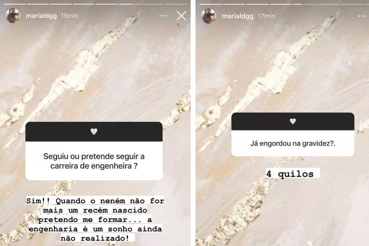 Enquanto conversava com os seguidores, Maria ainda falou sobre a vontade de concluir a faculdade de engenharia. “Quando o neném não for mais um recém-nascido, pretendo me formar. A Engenharia é um sonho ainda não realizado”, contou, adicionando, ainda, que ganhou quatro quilos na gestação até o momento.